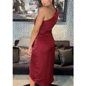 Show more This exquisite Midi Bodycon Dress perfectly combines elegance and comfort, making it an essential addition to any woman's wardrobe. Crafted from lightweight and smooth fabric, it feels heavenly against the skin, ensuring you're dressed to impress without sacrificing comfort. The dress features a striking one-shoulder design, showcasing your collarbone while providing a graceful silhouette. Whether you choose the dark blue sleeveless option or the deep red off-shoulder style, you are sure to turn heads. The asymmetrical hem adds a touch of excitement to a classic design, making it an ideal fit for various occasions.