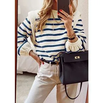 Whether you’re heading to school, work, or a casual date, this versatile sweater matches effortlessly with jeans, skirts, leggings, and even palazzo pants. The beautiful striped designs bring a fresh and trendy vibe to your outfit, while the ribbed knit cuffs add an extra touch of elegance. You’ll surely turn heads when you step out in this stylish piece.