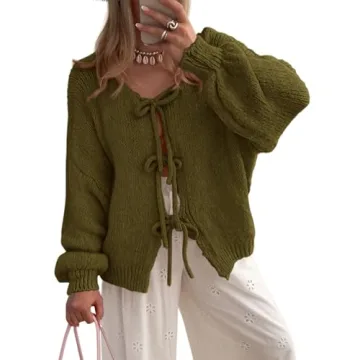 Show moreIntroducing the PRETTYGARDEN Women's Tie Front Bow Cardigan – a chic and versatile addition to every woman’s fall wardrobe! This cardigan perfectly balances comfort and style, featuring a cozy chunky knit construction that promises warmth throughout the cooler months. With its stunning tie front design and long puff sleeves, this piece not only looks fashionable but also accommodates freedom of movement, making it ideal for various occasions.