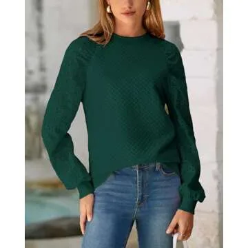 Show more Introducing the PRETTYGARDEN Women's Tops, a perfect blend of comfort and style for this fall season! Crafted from a soft, skin-friendly, and breathable material, this Eyelet Long Sleeve Crewneck Blouse is designed with your comfort in mind. The delightful quilted texture not only adds a unique flair but also offers warmth during cool weather. With a loose fit that's perfect for a variety of body shapes, this pullover shirt allows for freedom of movement without sacrificing your style. Say goodbye to bulky sweatshirts; this elegant blend of a dressy look and sweatshirt fit is exactly what your wardrobe needs for a versatile seasonal transition.