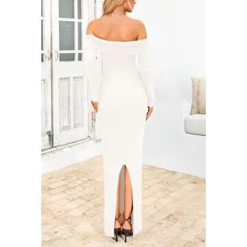 Featuring a unique back slit design, this dress adds a touch of allure while maintaining an air of elegance. Its off-the-shoulder design merges traditional charm with modern trends, ensuring you turn heads at any event. This fitted maxi dress is ideal for various occasions, from cocktail parties to weddings, allowing you to express your personal style effortlessly.