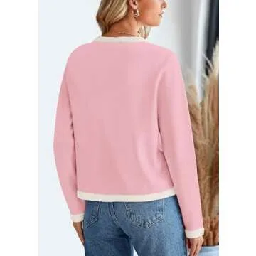 PRETTYGARDEN Women's Winter Trendy Button Down Open Front Cardigan Sweaters Knit Color Block Jackets Fall Fashion Clothes (Pink,Medium)