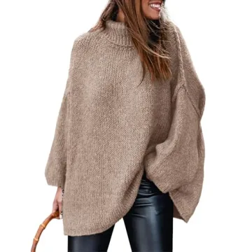 The distinct turtleneck design not only enhances the aesthetic appeal but also provides additional warmth, making it an ideal choice for any occasion. With its loose and slouchy fit, this sweater drapes beautifully over your body, allowing for the perfect balance between cozy and chic. Whether you choose to wear it with your favorite black leggings, stylish ankle boots, or tuck it into jeans for a more polished look, this sweater adapts seamlessly to your personal style.
