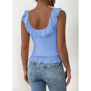 The playfulness of its sleeveless style and open back detail provides a touch of allure while accentuating your waistline beautifully. Available in a selection of on-trend colors including Light Blue, Army Green, and more, this versatile piece can effortlessly transition from dressy casual to relaxed styles. Perfectly pair it with high-waisted jeans, skirts, or shorts for versatile styling options!