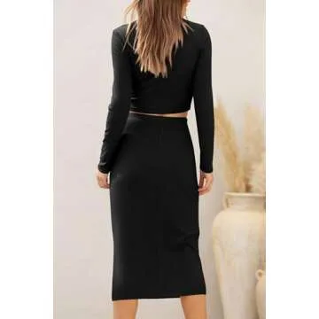 Show moreIntroducing the **PRETTYGARDEN Women's 2024 Fall 2 Piece Outfits Track Suits**, a chic combination of style and comfort designed for the modern woman. This fashionable set features a trendy long sleeve crop top paired with a bodycon midi skirt, perfect for showcasing your silhouette while allowing easy movement. Made from super soft and stretchy ribbed knit fabric, it promises an unparalleled wearing experience that's smooth to the touch. With style options available in classic black, this outfit is ideal for those who look to blend comfort with elegance during the fall season.