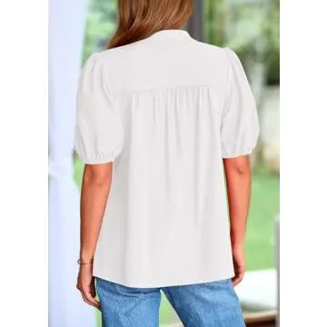 Show more Introducing the PRETTYGARDEN Womens Casual Summer Tops 2025, a versatile and stylish addition to your wardrobe. Designed with your comfort in mind, this blouse features a flattering V-neckline and elegant short puff sleeves that add a touch of sophistication to any outfit. Made from 100% high-quality cotton, it's lightweight and breathable, making it perfect for those warm summer days. The pleated details add depth and texture, while the loose fit ensures you stay cool and comfortable, whether at work, brunch with friends, or a formal dinner.