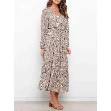 PRETTYGARDEN Womens Fall Long Sleeve Wrap V Neck Ruffle Floral Maxi Dress Casual Tie Waist Boho Chiffon Flowy Long Dresses