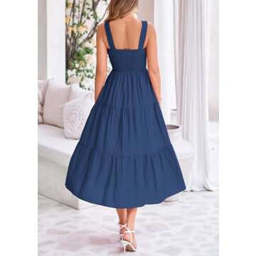 PRETTYGARDEN Womens Smocked Midi Dress 2025 Summer Ruffle A Line Long Flowy Dresses Cute Sleeveless Beach Sundress (Dark Blue,X-Large)