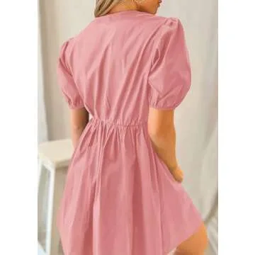 Show more Discover the must-have PRETTYGARDEN Womens Summer Casual Short Sleeve Dress, an ideal blend of style and comfort that will keep you feeling fabulous all summer long. Crafted from a luxurious blend of 60% Lyocell and 40% Cotton, this dress offers exceptional breathability and a soft touch against your skin. The unique short lantern sleeves add a feminine flair, while the adorable tie front bow detail gives a playful twist that makes it perfect for any occasion. With its classic A-line silhouette, this dress flatters every body type, making it a versatile choice for those sunny days and warm nights.