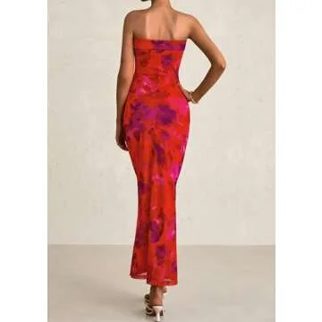 Introducing the PRETTYGARDEN Womens Summer Printed Tube Maxi Dress - a perfect blend of style, comfort, and elegance. This stunning sleeveless bodycon dress is designed for warm summer nights and is made from lightweight, breathable, and high-quality mesh materials. With an exquisite floral rust red print, this dress embodies femininity while offering a comfortable fit that lasts all day. Designed to flatter in all the right places, the off-the-shoulder tube top and slim fit create a stunning...