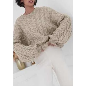 The cable knit design adds an elegant texture that makes this sweater not just a piece of clothing but a statement of style. Whether you're lounging at home, heading to the office, or going out for a casual meet-up with friends, this sweater is incredibly versatile and pairs beautifully with jeans, leggings, or skirts. The classic crewneck adds a touch of simplicity, allowing you to layer with your favorite blouses or tees underneath for added warmth.