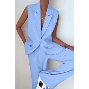 PRETTYGARDEN Womens Two Piece Outfits Sleeveless Blazer and Wide Leg Pants Suit Sets Business Casual Clothes (Light Blue,Small)