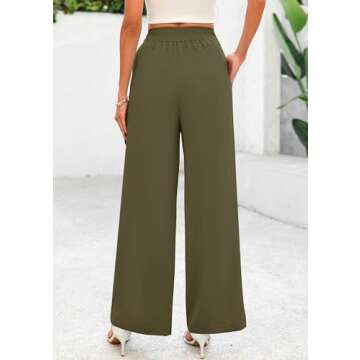 Show more Discover the perfect blend of style and comfort with the PRETTYGARDEN Women’s Wide Leg Pants Casual 2025. Crafted from a high-quality material blend of 49% Viscose, 34% Polyester, and 17% Polyamide, these trousers are designed to meet the demands of your busy lifestyle while providing all-day comfort. The wide-leg silhouette and elastic waist make them not only fashionable but also perfectly practical for a variety of occasions. Ideal for women who value quality fashion, these palazzo pants are more than just a wardrobe staple—they’re a statement piece! Available in an array of stunning colors, including Army Green, Dusty Pink, and Dark Wine Red, you'll find the right pair to suit your style.
