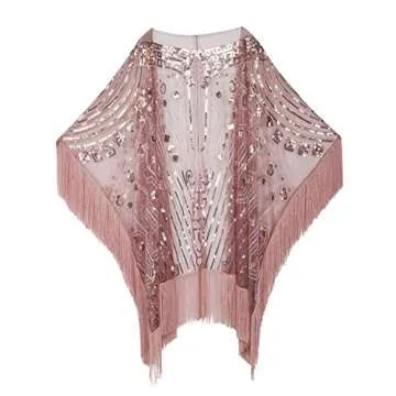 Introducing the PrettyGuide Women's Evening Shawl, a stunning beaded cape poncho that captures the essence of 1920s glamour. This exquisite wrap features intricate beading and sparkling sequins in a dazzling array of colors, including a captivating pink and a regal blue. Designed for versatility and elegance, it transforms any outfit—from a chic evening dress to a simple day look—into a fashion statement. The oversized open front design ensures a comfortable fit for women of all shapes...