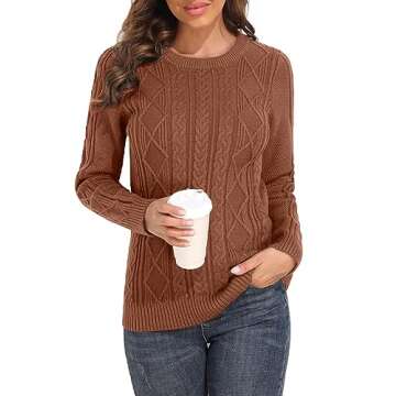 PrettyGuide Women's Sweater Crewneck Cable Knit Long Sleeve Pullover Tops S Amber Brown