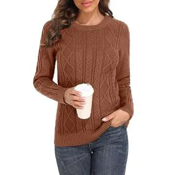 Show moreIntroducing the PrettyGuide Women's Sweater Crewneck Cable Knit Long Sleeve Pullover Tops in a stunning amber brown hue, designed to elevate your winter wardrobe with a touch of sophistication and unparalleled comfort. Made with a unique blend of 22% polyester, 50% viscose, and 28% nylon, this chunky cable knitted slouchy sweater is not just about looks; it's about feeling cozy and chic every time you wear it. The fabric feels amazing against your skin, mimicking the softness of human skin, while the carefully crafted twist and diamond patterns lend a vintage charm combined with a modern fit.