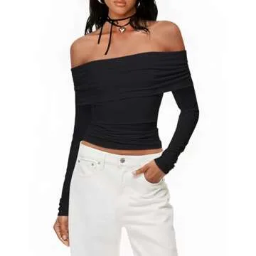 Prettywear Women's Sexy Off Shoulder Tops Going Out Nightout Shirt Black