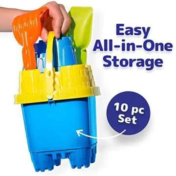 PREXTEX 10 Piece Beach Sand Toys Set for Kids - Bucket with Sifter, Shovel, Rake, Watering Can, 5 Animal and Castle Sand Molds for Kids & Toddlers - Sand Buckets and Shovels for Kids, Beach Toy Set