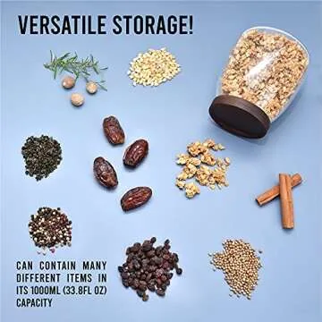 PreZervers Elegant Glass Food Jar with Wooden Lid - 33.8 Fl Oz (1000ml) - Airtight, Microwave & Dishwasher Safe - Perfect for Cookies, Spices, Tea, Candy & More
