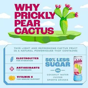 Pricklee Prickly Pear Cactus Water - Packed With Antioxidants, Electrolytes, Vitamin C - Natural Sports Drink for Immunity, & Recovery - Non-Sparkling, Low-Sugar, Low-Calorie, No Caffeine