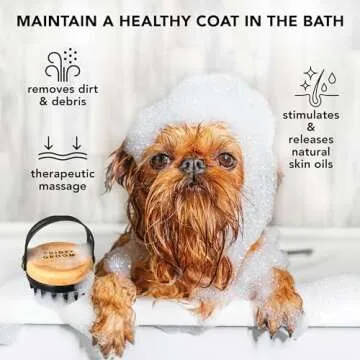 Pride and Groom Bath Brush – Dog Brush with Silicone Teeth & Bamboo Base to Release Debris & Undercoat, Stimulate Natural Skin Oils, Detangle, & Massage in and out of Tub for Healthy Coat