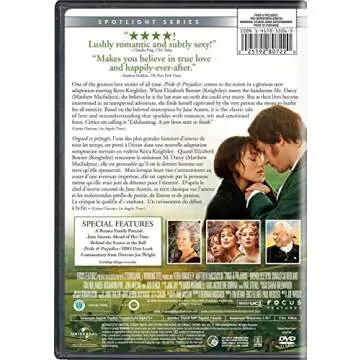 The film presents breathtaking cinematography that transports you to the lush landscapes and opulent ballrooms of Regency-era England. With a remarkable score that enhances every beautifully crafted scene, this adaptation resonates deeply with viewers. The chemistry between Knightley and MacFadyen is palpable, making every glance and dialogue exchange electrifying. Each character is portrayed with depth, including Dame Judi Dench's utterly captivating performance as Lady Catherine, ensuring this film is an unforgettable visual and emotional journey.