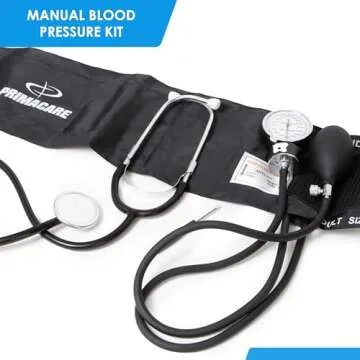 PrimaCare Medical DS-9197-BK Professional Classic Series Manual Adult Size Blood Pressure Kit, Emergency Bp kit with Stethoscope and Portable Leatherette Case, Nylon Cuff, Black
