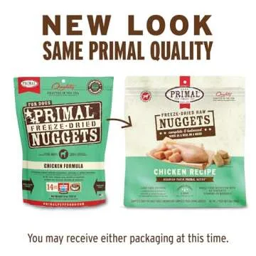 Show more Introducing Primal Freeze-Dried Nuggets, a premium dog food crafted with the utmost care for your furry friends. Made with cage-free chicken, raised without antibiotics, steroids, or added hormones, this dog food ensures your pet receives only the healthiest nutrition.