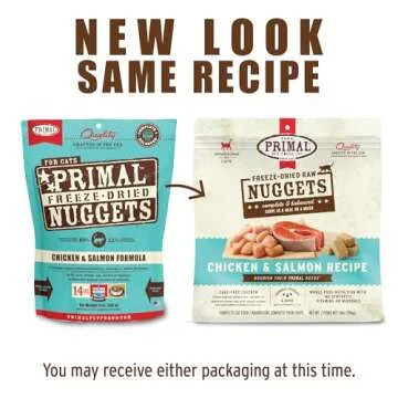 Show moreIntroducing the Primal Freeze Dried Raw Cat Food Nuggets Chicken & Salmon, the ultimate premium meal solution for your feline friend. This complete and balanced raw cat food is meticulously crafted with cage-free chicken, raised without antibiotics, steroids, or added hormones, combined with wild-caught salmon to provide a nutrient-dense, high protein diet. The incorporation of USDA certified organic fruits and vegetables ensures that your cat gets a wholesome meal rich in natural goodness. Transitioning from traditional kibble to this minimally processed alternative will not only elevate your cat's dining experience but also improve their overall health.