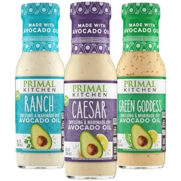 Discover the secret to tantalizing taste buds and healthy living with the Primal Kitchen Creamy Salad Dressing Variety 3-Pack. This mouthwatering assortment includes three of the brand's signature dressings: the creamy no-Dairy Ranch, zesty Caesar, and fresh Green Goddess Dressing & Marinade. Each dressing is lovingly crafted with premium, high-quality ingredients like avocado oil and Certified Humane cage-free eggs, ensuring you indulge in incredible flavors...