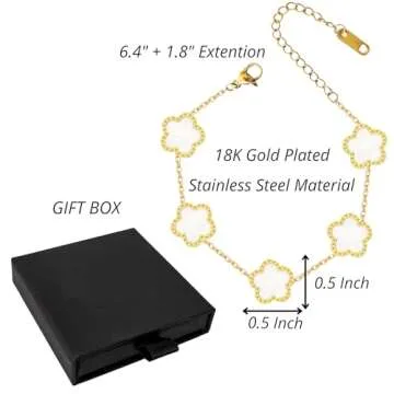 PRIMATORIA 5 Leaf Clover Bracelet for Women 18K Gold Plated Stainless Steel Lucky Five Leaf Link Bracelet Jewelry Gift for Her (White Gold)