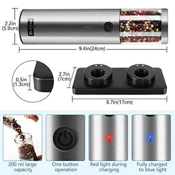 Equipped with a spacious 200ml BPA-free acrylic container, this device makes refilling a breeze. The adjustable coarseness setting allows you to customize your grind to perfection. Plus, the integrated blue LED light provides visibility so you can season your dishes exactly as needed. Enjoy consistency, convenience, and aesthetic appeal all in one!