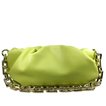 Chic Cloud-Shaped Dumpling Clutch Purse with Chunky Chain - Lime