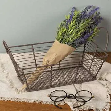 FARMHOUSE DECOR: A rectangular wire basket with dual handles to achieve a functional farmhouse style