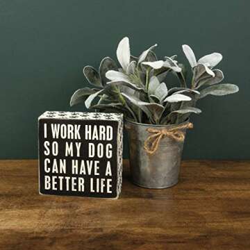 Primitives by Kathy 21490 Pawprint Trimmed Box Sign,Wood, Paper, 5" Square, Dog Can Have a Better Life , White