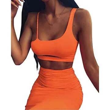 This stunning two-piece dress outfit is designed to turn heads and make you feel confident and empowered. Made from a blend of soft polyester and spandex, it offers a stretchy, form-fitting silhouette that accentuates your curves beautifully. With a sexy square neck and delicately thin spaghetti straps, this outfit showcases your shoulders and collarbones elegantly. The backless crop top paired with a ruched bodycon maxi skirt...