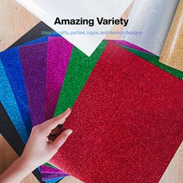 The glitter finish adds a dazzling touch to your creations, ideally suited for a variety of textiles including cotton and polyester. You won't have to worry about wear and tear either—as these vinyls are washing machine safe and can be peeled off hot or cold, providing ultimate ease of use and reliability.