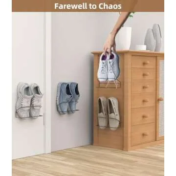 PrimZooty Wall Mounted Shoe Rack 4Pack, with Sticky Hanging Strips, Metal Wall Shoe Storage, Hanging Shoe Organizer for Wall/RV/Door