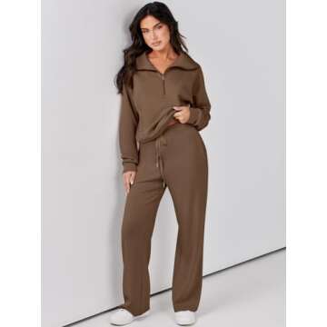 - Versatile Design: Featuring an oversized half-zip sweatshirt and high-waist drawstring wide-leg pants, this outfit can be dressed up or down to match your mood.