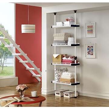 PRINCE HANGER, Multipurpose Shelf, Holds 20kg per Shelf, Heavy Duty 32mm Vertical Pole, Clothes Organizer, Breathable Shelf(Resin), Ivory, Tension Rod for Closet, Walk in Closet, PHUS-0041
