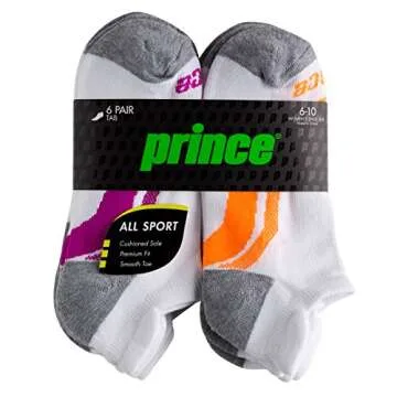Prince Women's Tab Performance Athletic Socks for Running, Tennis, and Casual Use (6 Pair Pack) (Women's Shoe Size 8-12 (US), White)