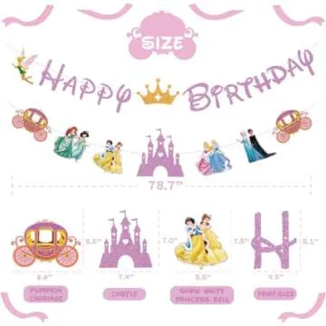 Princess Birthday Party Decoration For Girls, Pink Princess Birthday Banner For Kids Baby Shower, Princess Happy Birthday Party Supplies