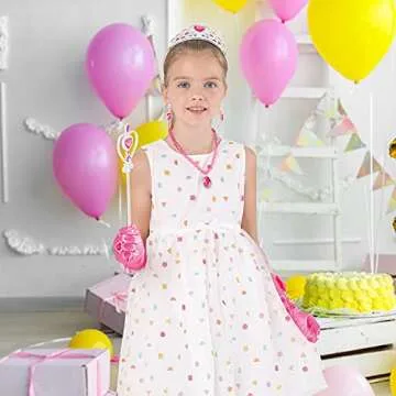 Princess Dress Up Party Accessories for Princess Costume Gloves Tiara Wand Necklace Earrings Bracelet and Ring Gift Set 9pcs (Rose, Set of 7, 9pcs)