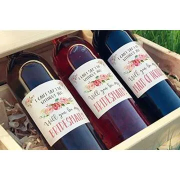 Printed Party Bridesmaid Proposal Wine Bottle Label Gift, Floral, Set of 7