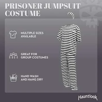 Prisoner Jumpsuit Halloween Costume - Unisex Inmate Jail Costume - Unisex for Adults - White and Black X-Large