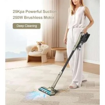 With its **25000 PA Powerful Suction**, powered by an advanced 250W brushless motor, this vacuum delivers a robust suction that ensures no dirt or debris escapes its grip. Say farewell to dust bunnies and stubborn messes as this vacuum becomes your go-to solution for achieving a deep and thorough clean every time. Enjoy the peace of mind that comes with knowing your home is spotless, with every corner attended to!