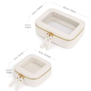 This stylish travel organizer boasts a minimalist boxy design adorned with polished hardware, offering a chic aesthetic that stands out. Crafted from exquisite Vegan leather, it is not only eco-friendly but also waterproof, making cleaning an absolute breeze; simply wipe it down with a damp cloth or tissue. The transparent material further enhances its functionality by allowing effortless visibility, so you can quickly locate exactly what you need without any hassle.