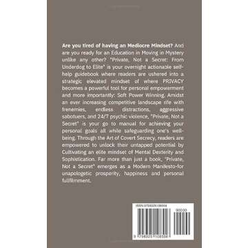 While many personal development books focus on loud proclamations of success and visible achievements, Private, Not A Secret sets itself apart by emphasizing the hidden power of silence and subtlety. Unlike competitors that promote extroverted strategies, this guide teaches you how to thrive with a quiet confidence, offering a refreshing perspective in a world that often favors the loudest voices.