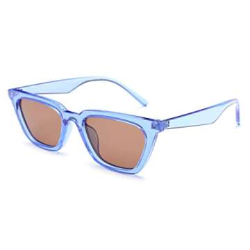 Pro Acme Retro Square Cat Eye Sunglasses for Women Men 100% UV Protection Trendy Outdoor Sun Shades (Transparent Blue Frame | Dark Brown Lens)
