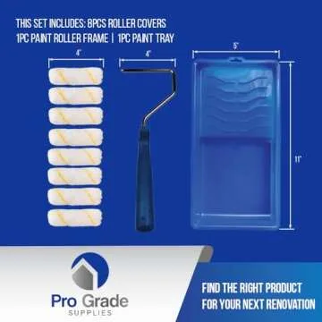 Pro Grade - Paint Roller Tool Kit - 10 Piece Painting Set - Mini Plastic Paint Tray Set, Mini Roller Frame,Microfiber Roller Covers